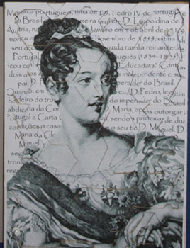 D. Maria II, de seu nome completo, Maria da Glória Joana Carlota Leopoldina da Cruz Francisca Xavier de Paula Isadora Micaela Rafaela Gonzaga, é filha de D. Pedro IV de Portugal e Imperador Pedro I do Brasil e da Arquiduquesa D. Leopoldina de Áustria. Nasce no Rio de Janeiro a 4 de Abril de 1819.